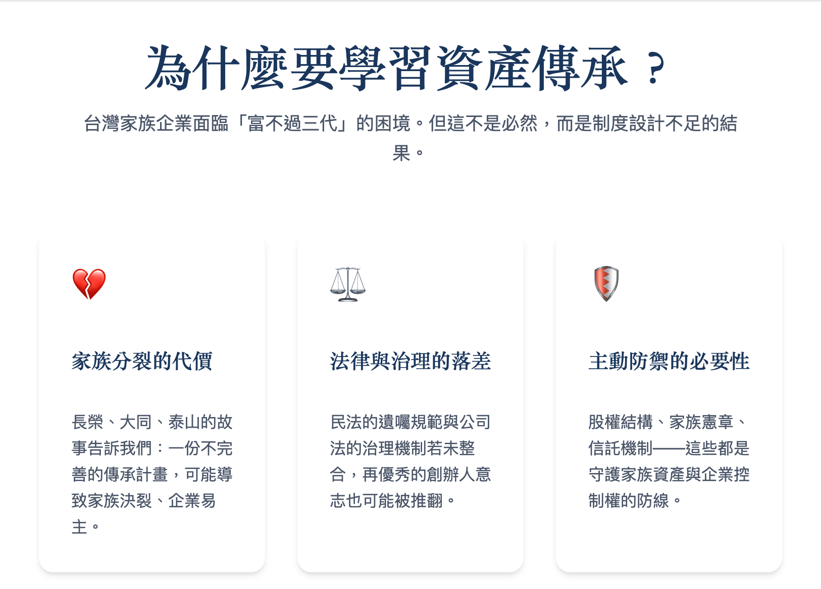 多年來深耕網路、科技與新媒體領域,協助無數團隊完成募資與商業模式落實。不只陪創業者打天下,更致力於協助家族企業守住基業,解決二代接班、遺產節稅與資產保護的法律難題。